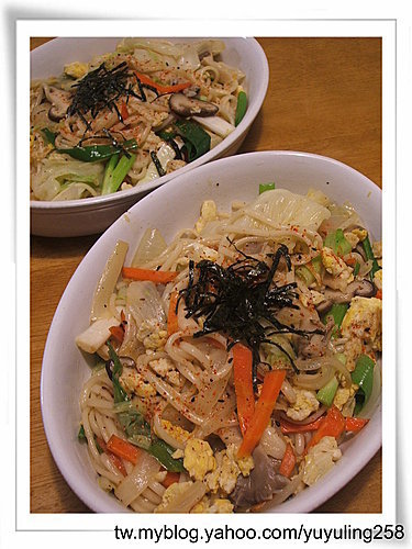 洋蔥~鮮菇~蔥段~紅蘿伯..加上高麗菜..拌炒一下..入麵...
